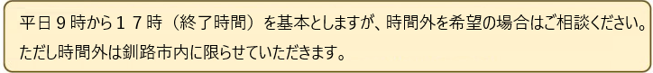 市立釧路総合病院は、病院理念を『信頼と満足の創造』とし、地域医療支援病院として「地域医療を支援するため、病診連携を密にします」を経営方針の一つに掲げています。この方針に基づき、当院の専門看護師や認定看護師が地域の医療機関、介護・福祉施設、また、一般市民に対し研修会を行うことを『出前講座』と名付けました。専門的知識を提供しながら、共に学ぶ体制や顔が見える関係を築くことにより、地域との連携強化や皆さんの健康推進に役立てていただきたいと考えております。様々な講座メニューをご用意しております。どうぞ、お気軽にお申し込みください。
