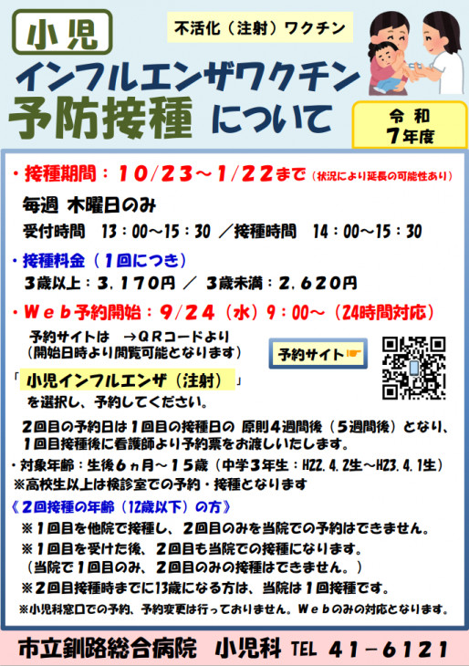 ※ 小児科窓口での予約、予約変更は行っておりません。Webのみの対応となります。