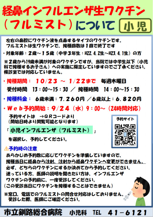 ※ 接種当日に経鼻から注射、注射から経鼻ワクチンへの変更が出来ません。必ずどちらのワクチンにするか決めてから予約を行ってください。